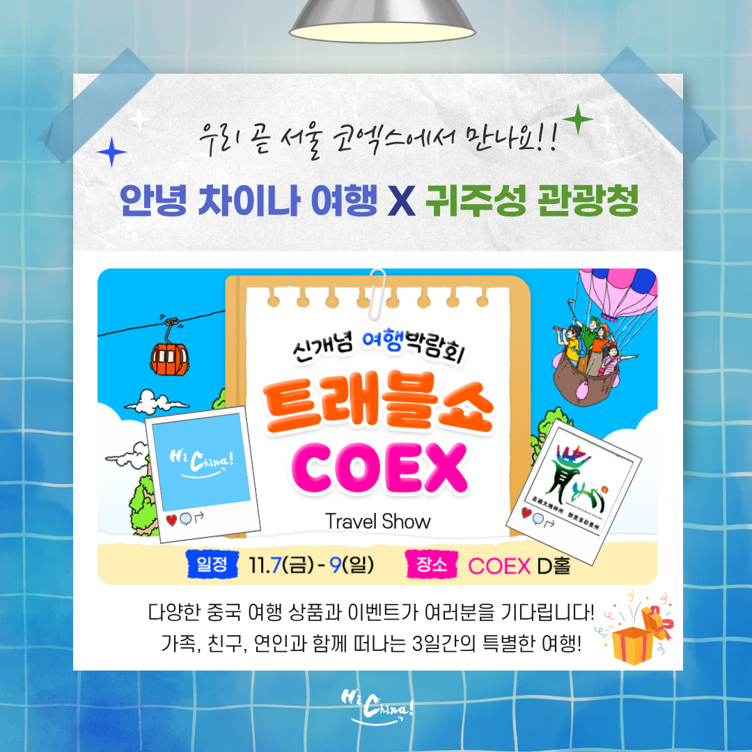 이번 주 11월 7일 ~ 9일, 3일간 서울 COEX 트래블쇼 2025의 장이 펼쳐집니다! 저희 안녕 차이나 여행도 참가합니다